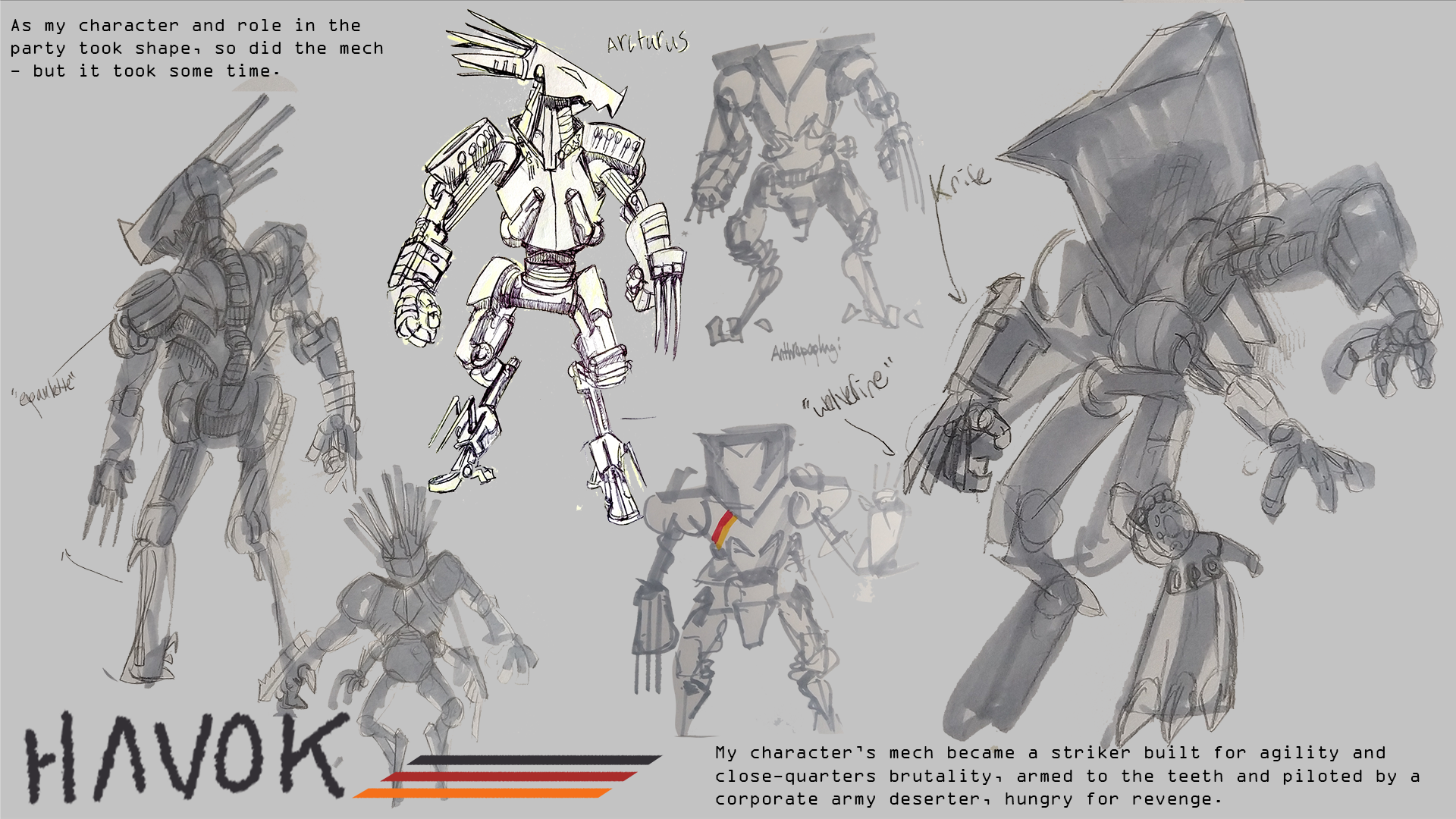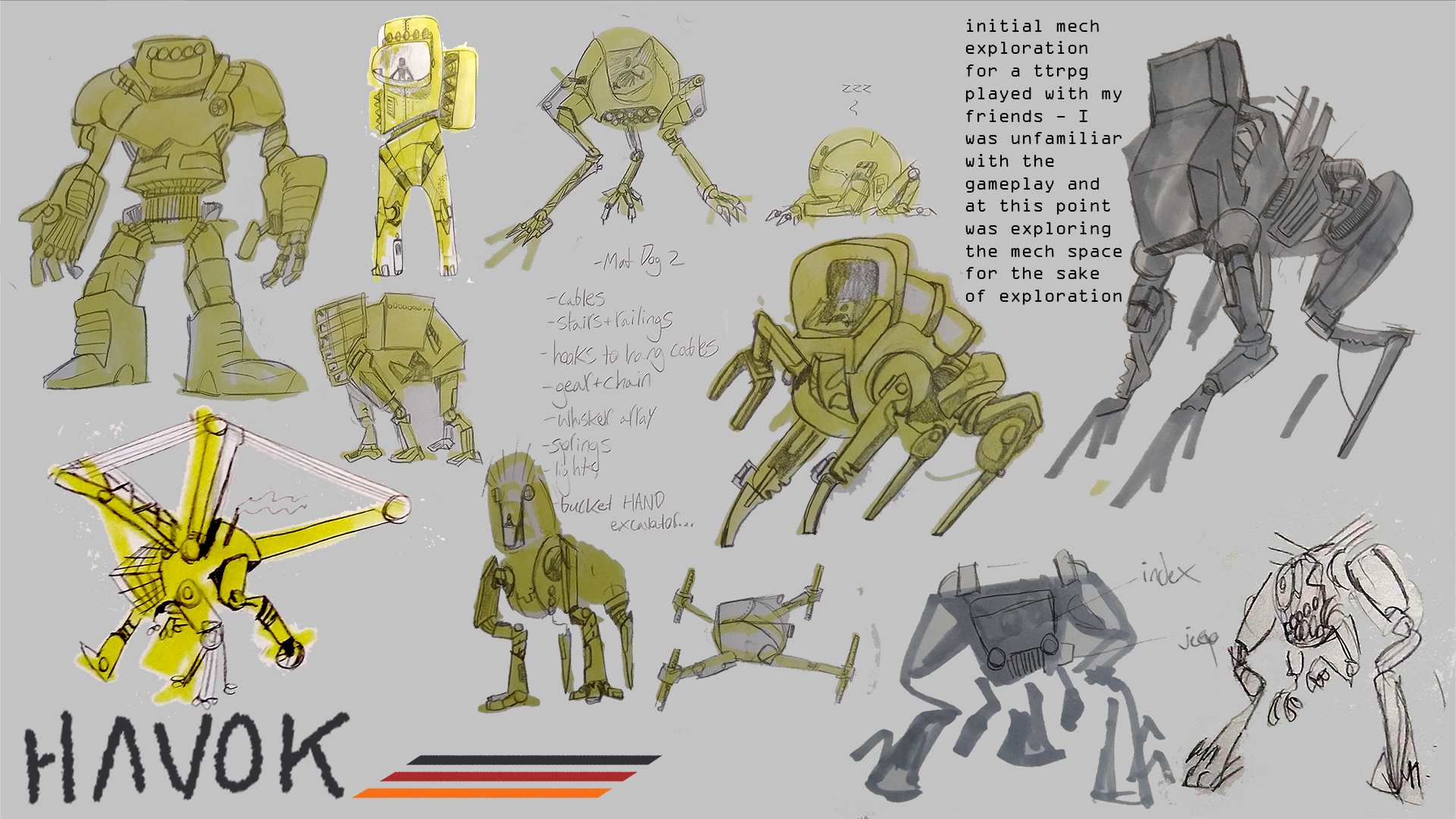 I'm a versatile artist with a broad range of interests (I've been very into mechs lately!), and a love for effective communication and storytelling through visual composition, design, and plain old words. Please pardon any dust as I built this website myself from artisanal, small-batch HTML and CSS.