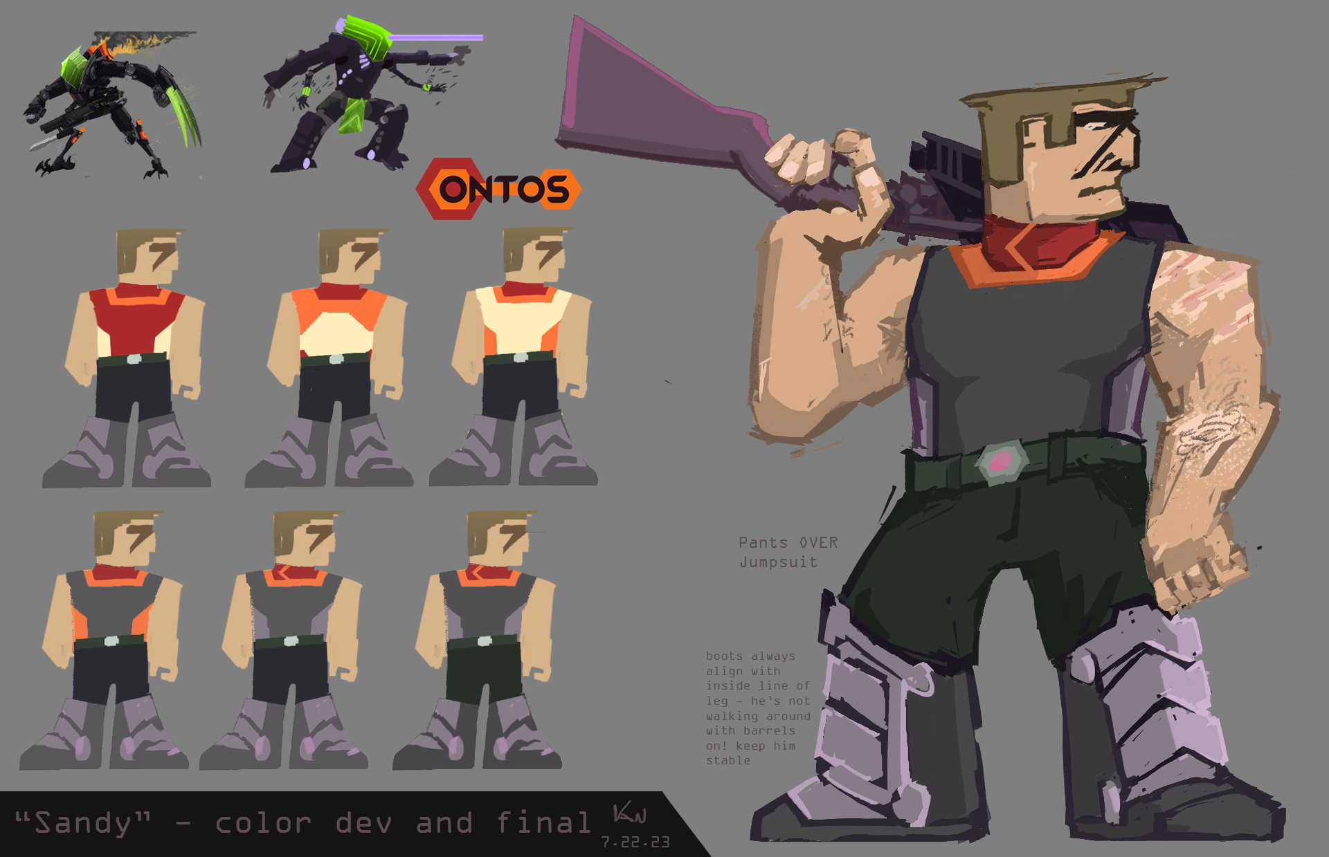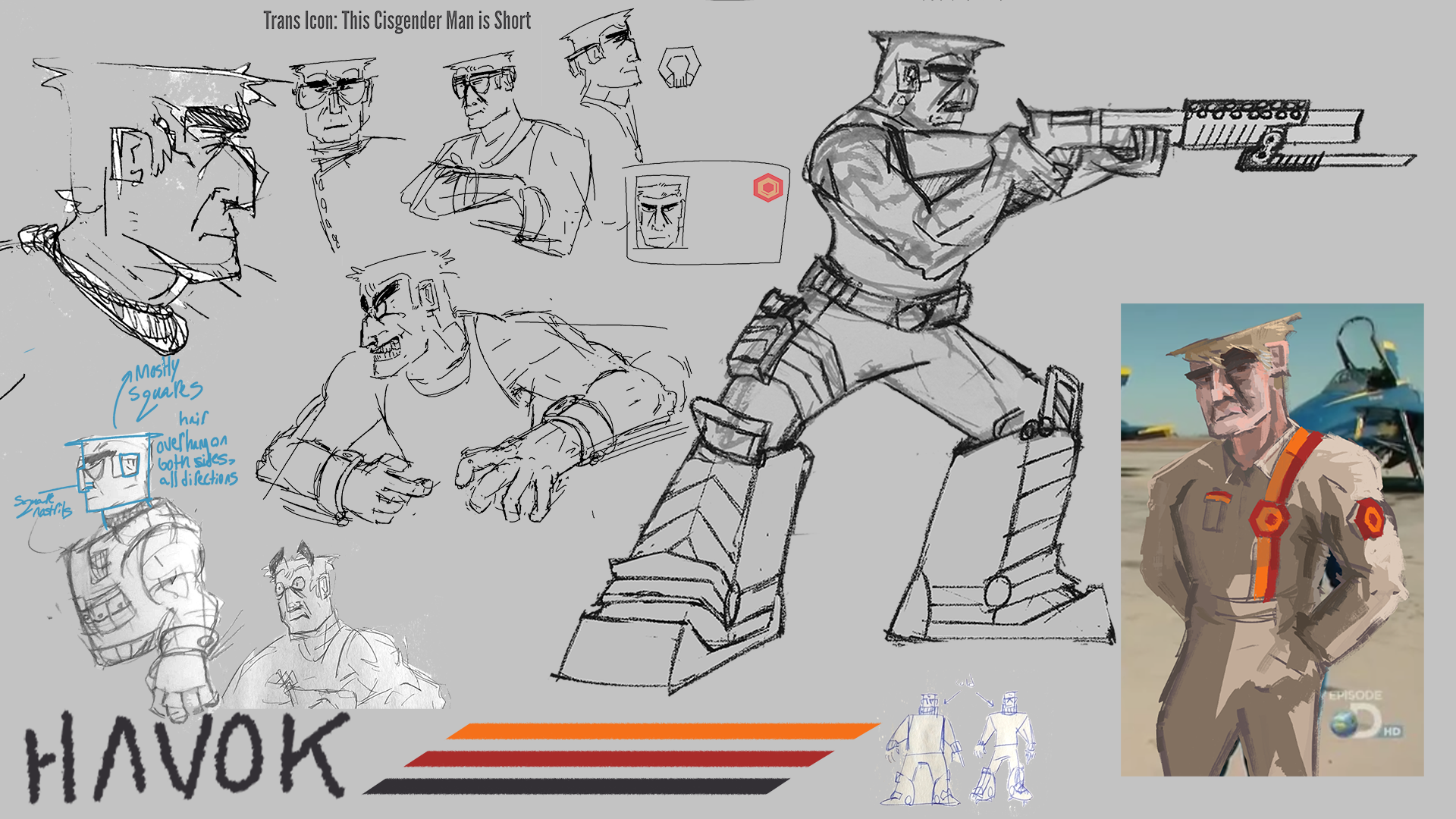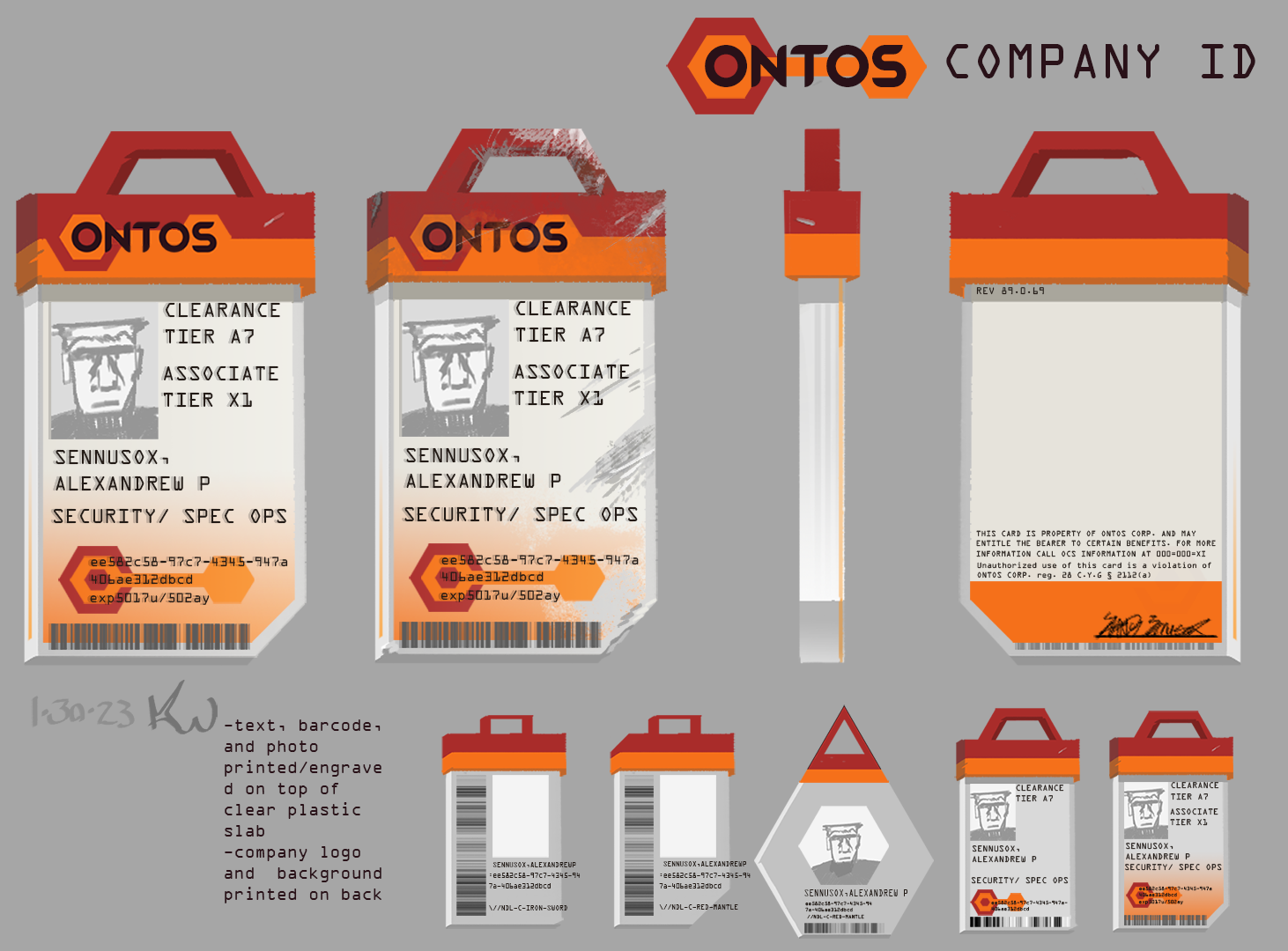 Alexandrew "Sandy" Sennusox, callsign HAVOK, with his mech "Opportunity", and his ONTOS employee ID. Personal work, Jan. 2023